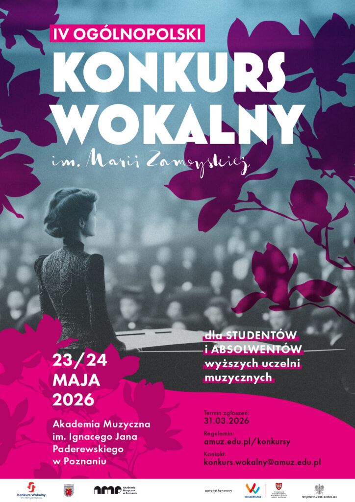 Szczegółowe informacje oraz dokumenty dotyczące udziału w Ogólnopolskim Konkursie Wokalnym im. Marii Zamoyskiej znajdą Państwo na stronie Akademii Muzycznej w Poznaniu.